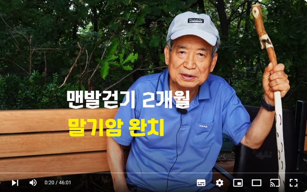 맨발걷기로 말기암 완치 박성태 교수- 맨발걷기로 전립선암 말기 완치 문순자(여, 77세)- 맨발걷기로 수술 후 8차례 항암 마친 위암, 새로 생긴 복막암이 모두 치유되고, 회춘하다 내몸은 내가지키자 2023.10.12